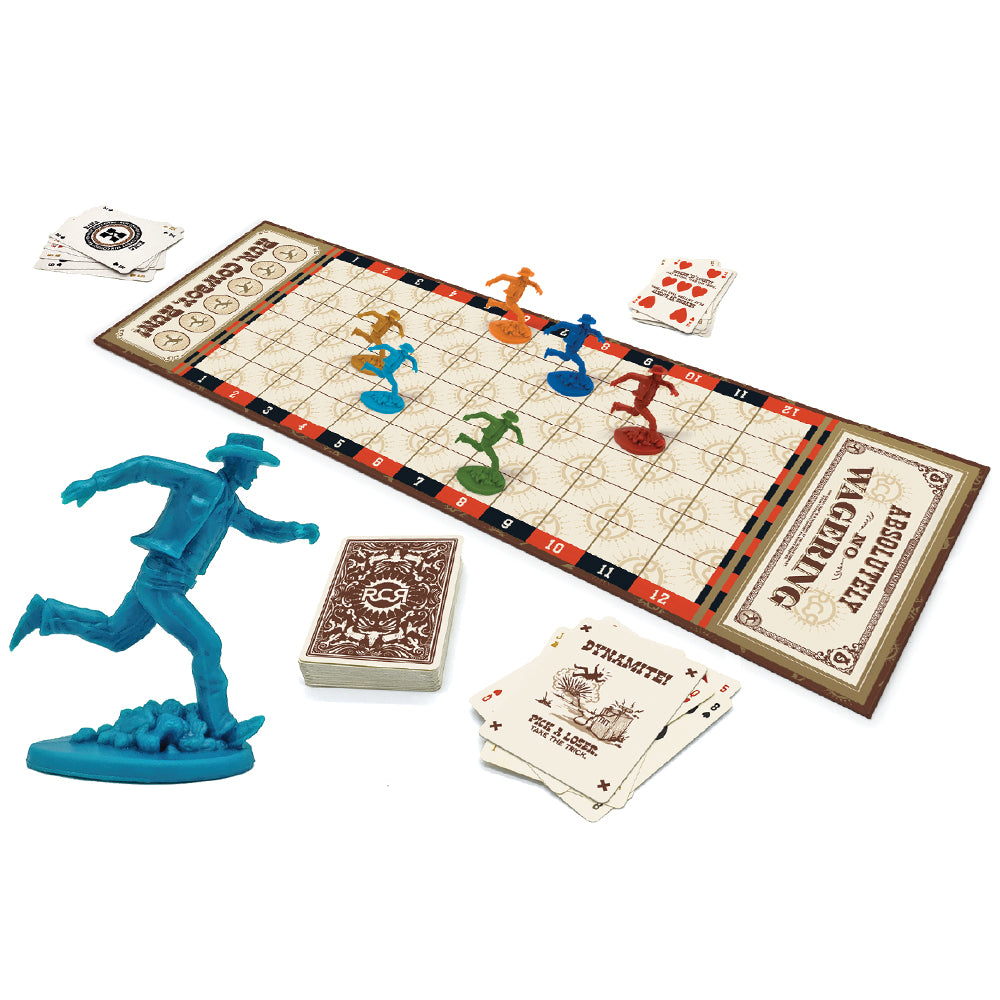 Will your cowboy be the first to cross the finish line? You'll need to play your cards right, take lots of tricks, and grab that gold. But watch out! Rattlesnakes! Dynamite! Quicksand! Those are just some of the hazards your fellow players may throw your way. Are you in?